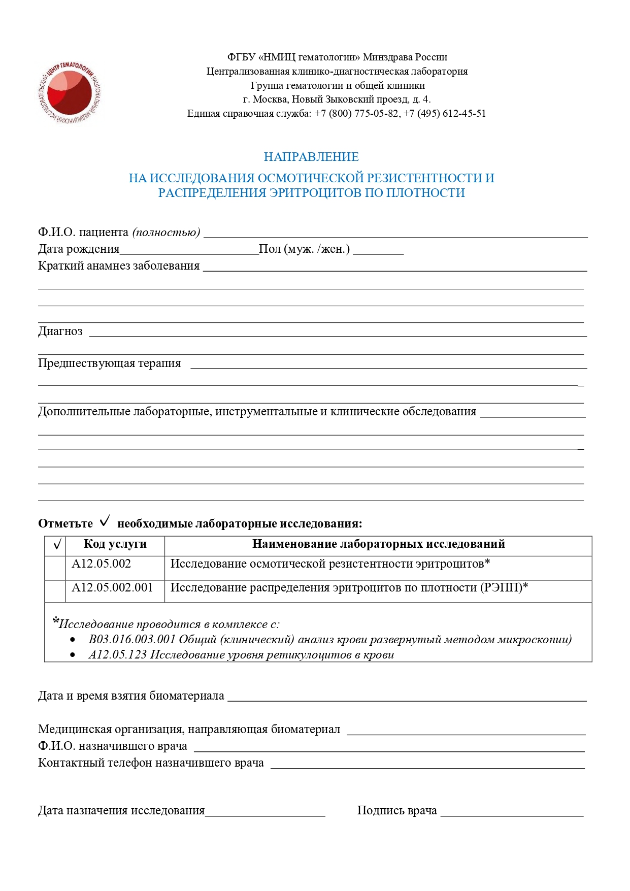 Перед отправкой биоматериала для лабораторных исследований с помощью курьерской службы выше перечисленные документы необходимо сформировать, обратившись к специалисту коммерческого отдела службы организации оказания медицинской помощи в системе обязательного медицинского страхования и внебюджетной деятельности по телефону +7 (495) 612-80-92 или по электронной почте oplata@blood.ru: